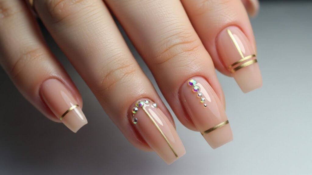 - Nude nails with gold foil