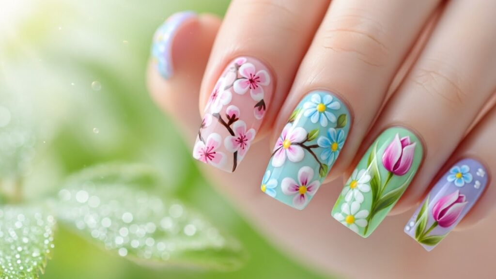 14. Floral Acrylic Nail Ideas — Soft and Feminine