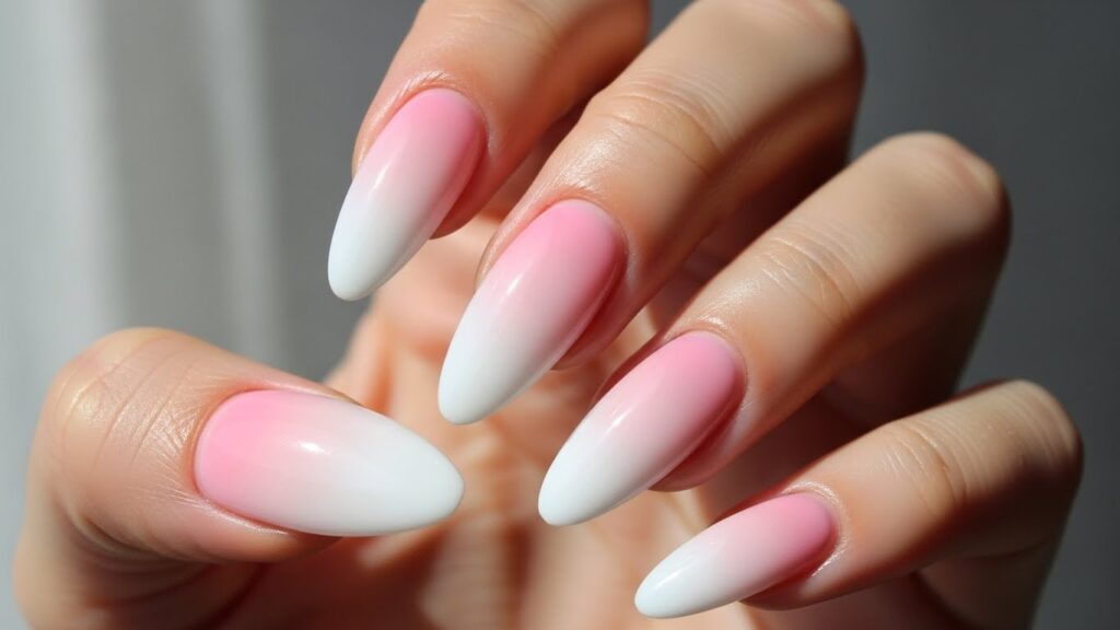 - Pink to white (baby boomer nails)