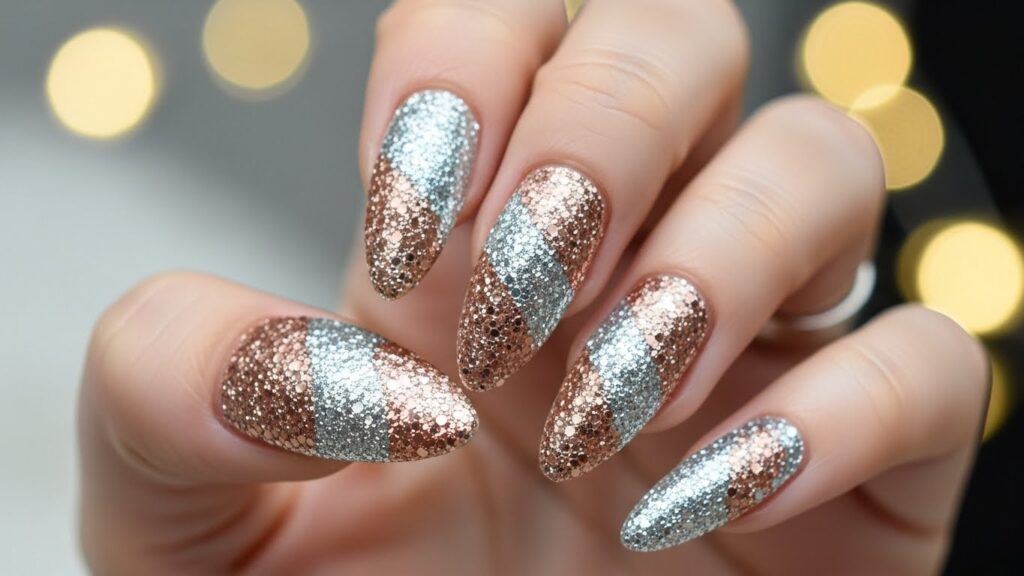 - Full glitter nails