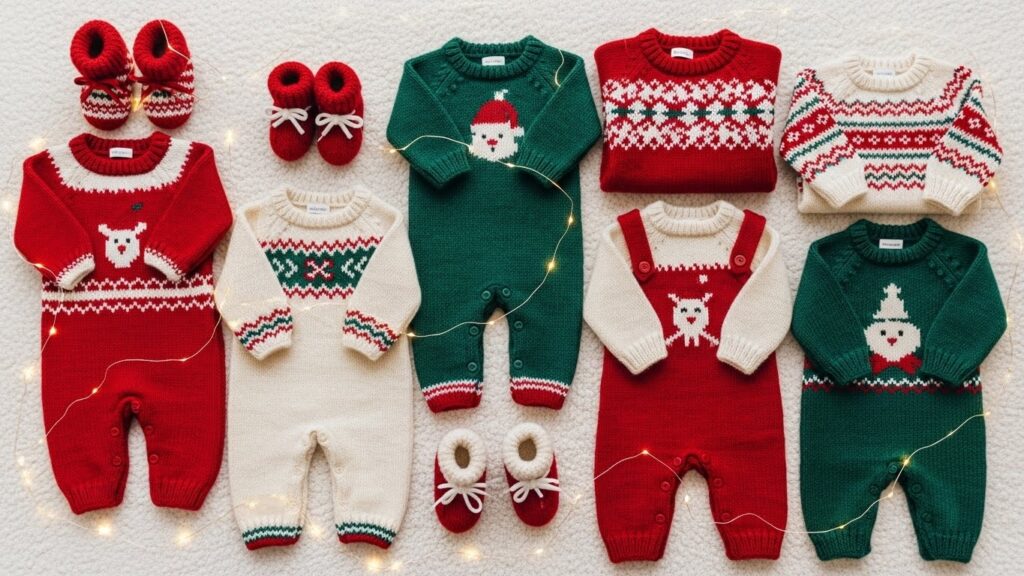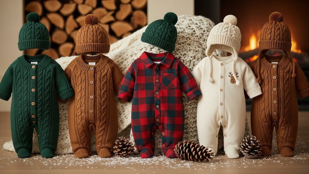 Christmas baby outfits are all about cute, warm, and comfortable holiday looks. Instead of stiff, glittery clothes, modern parents prefer soft knits, warm textures, and muted festive colors.