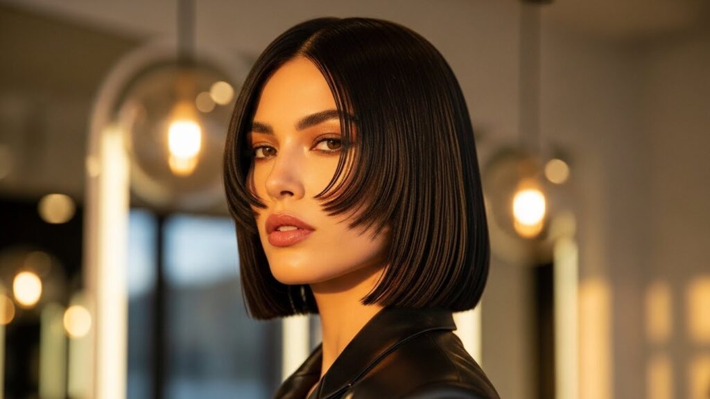 - Short bob with chin-length framing