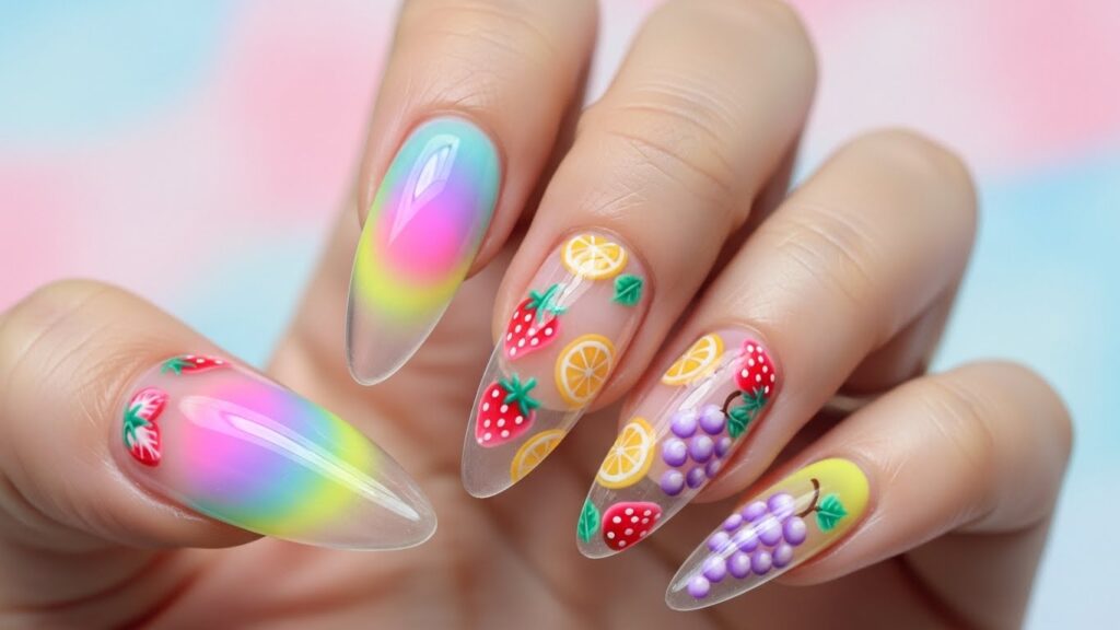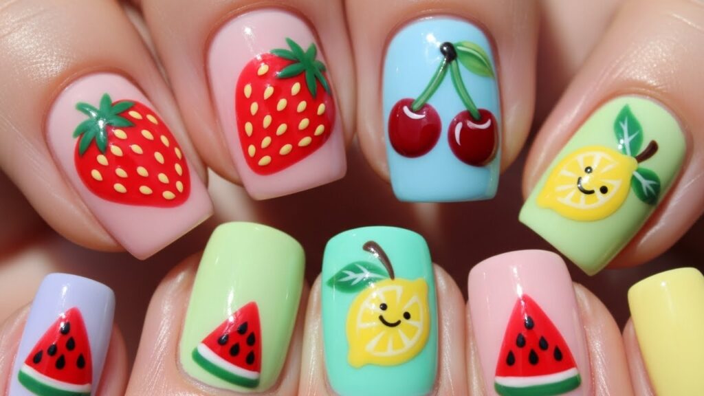 Strawberry nails, cherry nails, and lemon nails are trending.