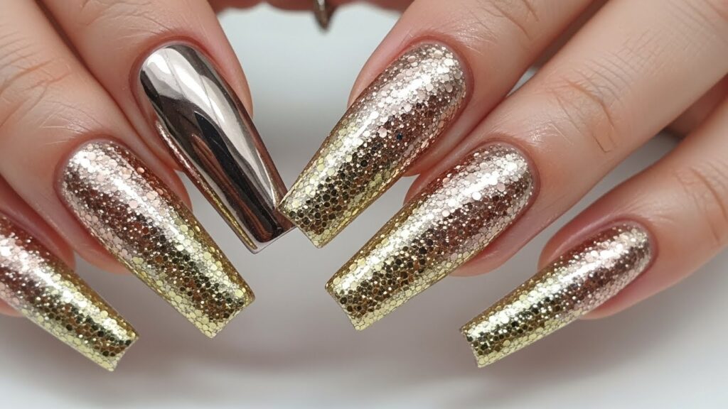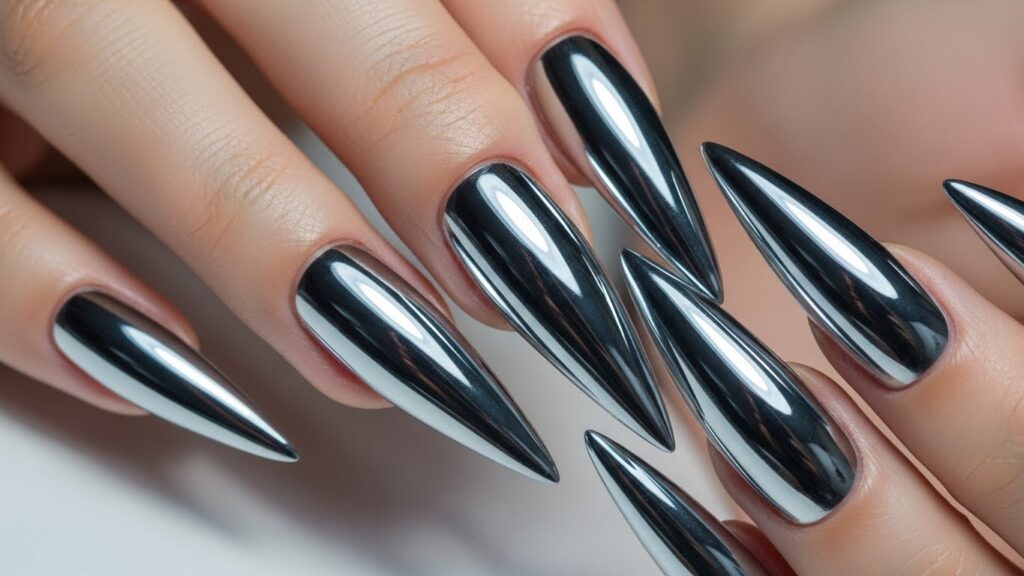 Mirror-chrome on long nails gives a bold, powerful appearance. It’s one of the hottest looks of 2025.
